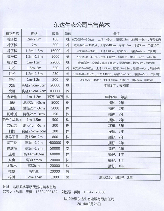 東達生(shēng)态公司出售苗木